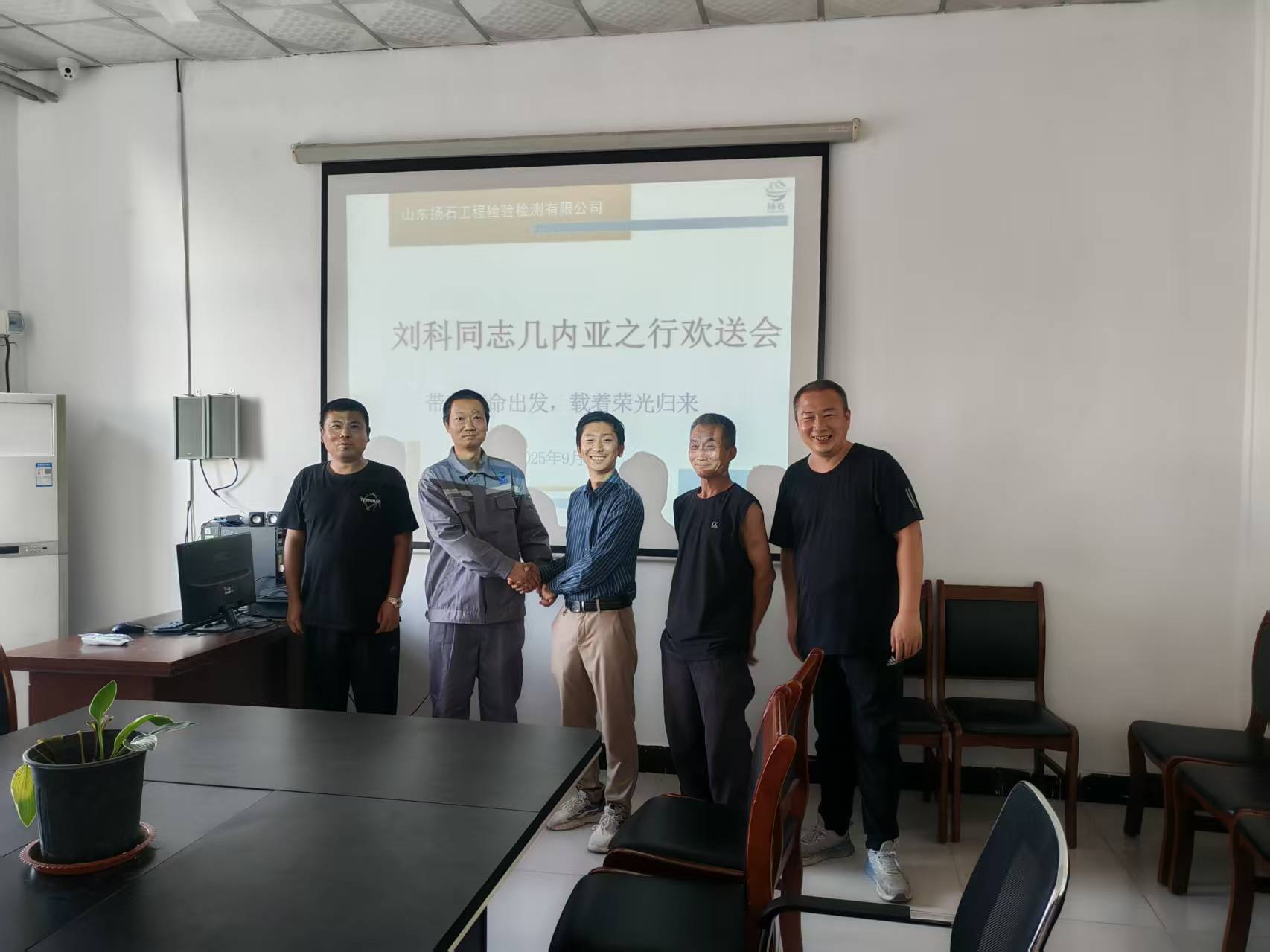 2025年9月25日,山東揚石工程檢驗檢測有限公司就劉科前往幾內亞共和國檢測項目工作之行,舉行歡送會,劉科同志...